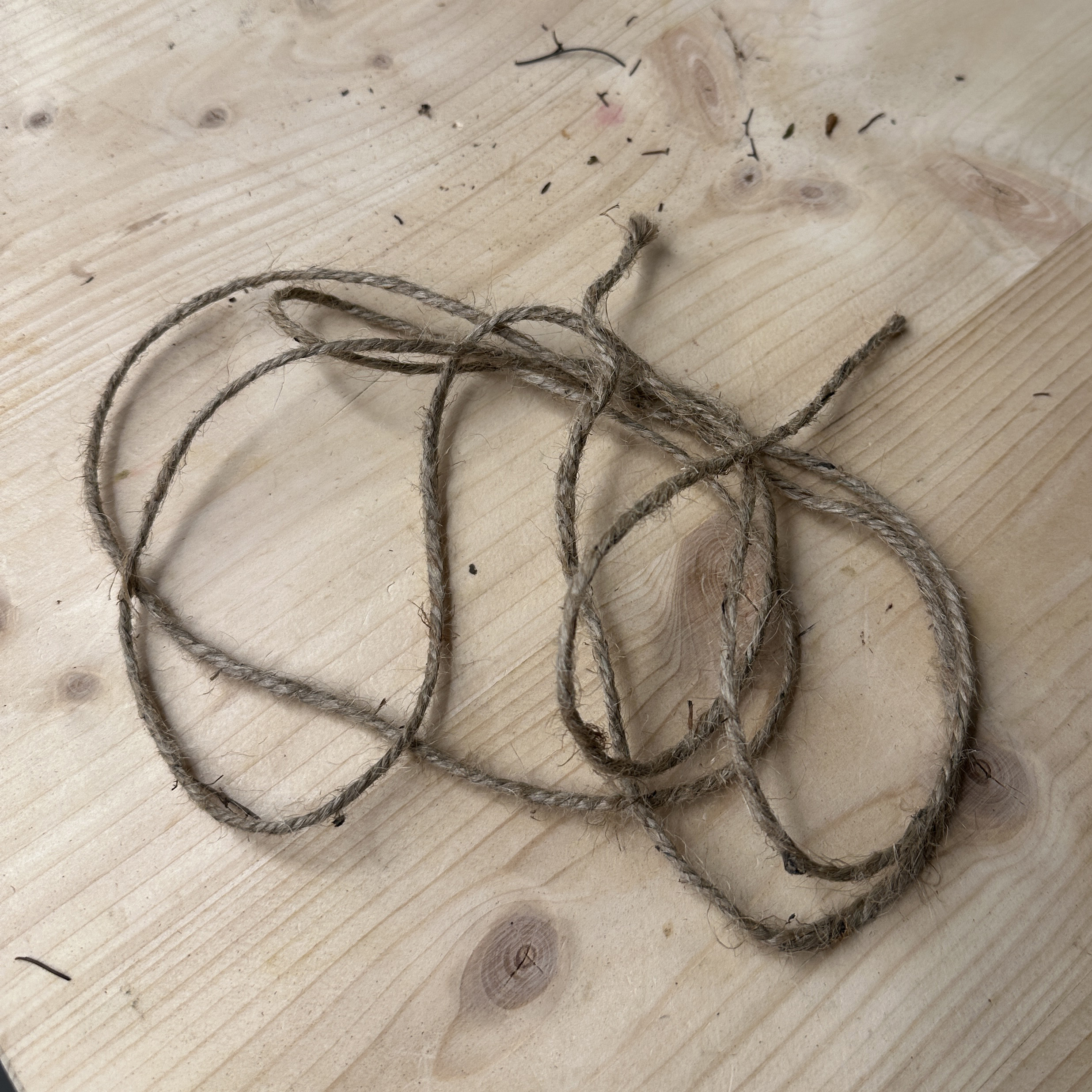 Sorgfältig vom Bündel abgewickelt, ist die Schnur nämlich gut 2 Meter lang. Damit lässt sich einiges machen. Ein paar Beispiele: Zeitungen bündeln, Haarkränze binden (wir nehmen die Schnur als Trägermaterial), Blumen trocknen oder ...